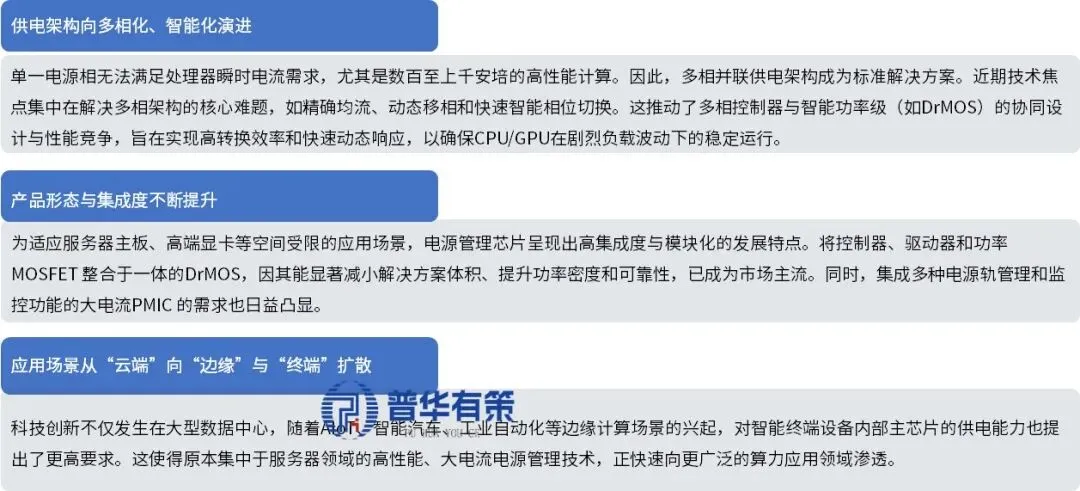 为应对算力芯片功耗激增带来的供电挑战,电源管理芯片行业在技术和产品架构上经历了显著创新与迭代。