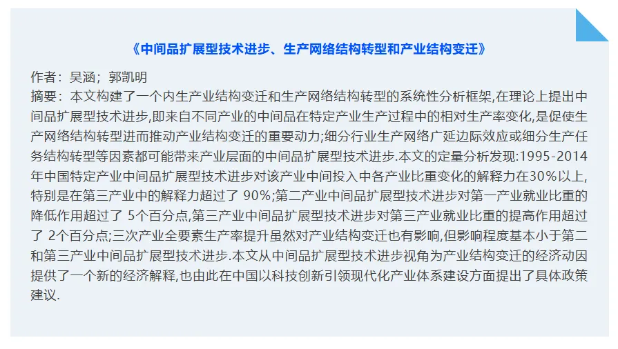 不同于传统的全要素生产率(TFP)提升,该变量聚焦于特定中间投入品相对生产率的提升如何改变整个生产网络结构。例如,芯片性能提升不仅影响电子制造业,还通过投入产出关系带动汽车、医疗设备等行业升级。文章证明其对服务业比重上升的解释力超过90%,远高于传统因素。这是一个系统性、网络化视角的技术进步概念,揭示了产业结构变迁的深层动力。