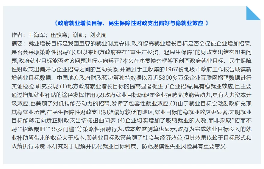 该变量指地方政府设定城镇新增就业目标后,能够反向矫正“重生产、轻民生”的财政支出结构扭曲,促使财政资金更多投向就业补贴、技能培训等民生领域。实证表明,在原本民生支出偏好的地区,就业目标的稳就业效果更强,说明目标责任制具有“激励相容”特征。这一变量揭示了行政目标如何通过预算约束重塑地方政府行为逻辑。