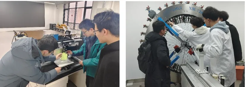 西安交通大学机械工程学院深度实践产教融合的育人理念,在学校未来技术学院智能制造方向这块“试验田”打造了“理论+实践”双课联动的新模式,以项目制推动创新人才培养与行业需求紧密联动。2024年1月14日,未来技术学院智能制造方向首批本科生的智能制造工艺与装备(理论课,3学分)、智能制造工艺与系统控制(实践课,2学分)在中国西部科技创新港20号楼顺利完成课程项目答辩。该课程以航天六院、航天五院的工程任务需求为牵引,在实战中培养学生解决复杂工程问题的能力,其中(1)理论课以航天发动机工艺需求主线,从材料成型机理讲述传统加工工艺以及电、物理、化学等特种加工工艺的原理;(2)实践课以新型航天器工艺需求为主线,设置了可重构天线制造、复合材料编织成型两个课题。会上两个项目组分别完成了PPT讲解和现场成果展示,受到校内外专家一致好评。课程答辩专家包括航天科技集团六院7103厂郑伟研究员、航天科技集团五院504所王一喆高工、机械基础国家级实验教学示范中心王保建研究员、机械学院国际机械中心周晋教授、陈帅教授,未来技术学院人才培养办公室樊芃参加会议,机械学院航天制造与信息工程研究所刘金鑫教授主持会议,机械学院马猛、张迪、王晨希、孙若斌等授课教师以及若干研究生助教参与会议。