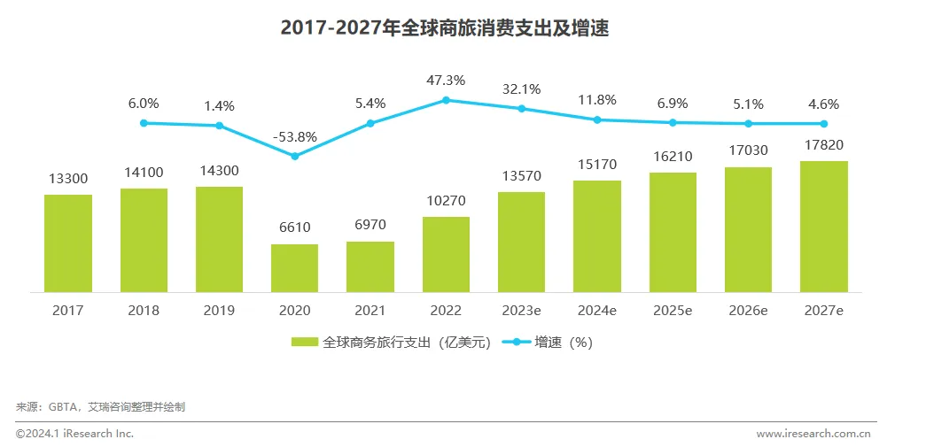 疫情影响减弱后,全球商旅消费支出迅速回温