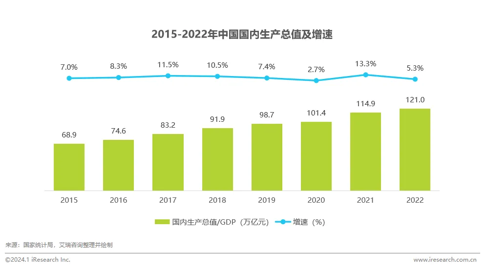 从宏观数据看,2022年中国国内生产总值达121万亿元,持续保持稳中向好态势。