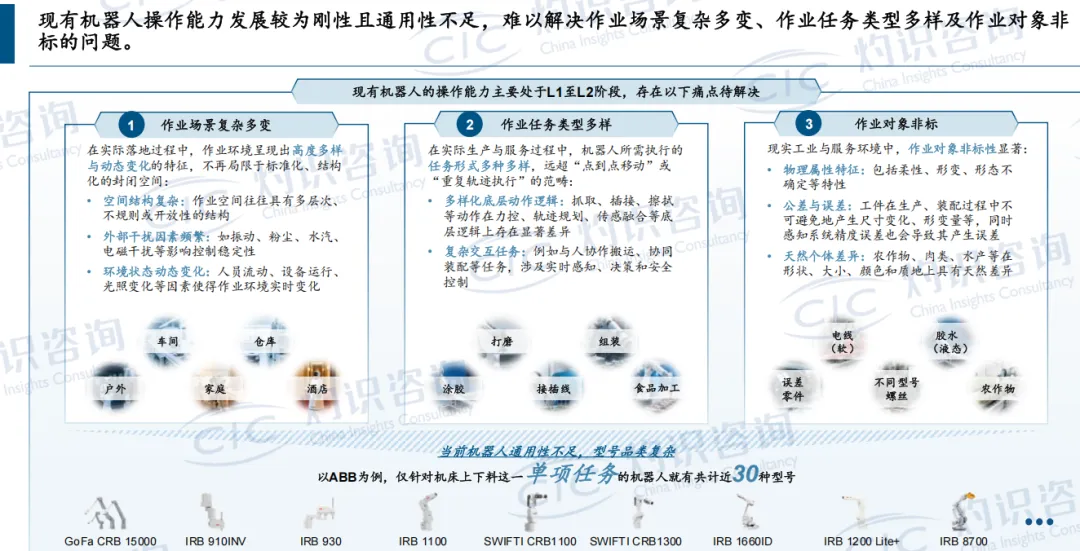 CIC灼识咨询的《自适应机器人行业白皮书》【文末附资源免费下载方式】摆在案头,它揭示了一个被AI光环掩盖的残酷现实:当我们热烈讨论大模型如何“思考”时,真正卡住通用智能脖子的,或许是它如何在物理世界“动手”。