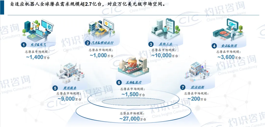 白皮书测算,自适应机器人的全球潜在需求规模超过 2.7亿台,对应一个万亿美元级的市场。这不仅仅是“机器换人”的逻辑,更是“机器拓荒”的故事。