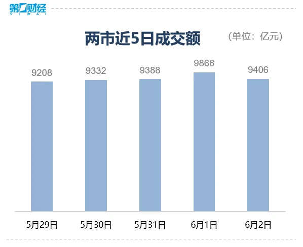 6月2日,大盘全天高开高走延续反弹,深成指领涨。截至收盘,沪指涨0.79%,深证成指涨1.50%,创业板指涨1.22%。沪深两市今日成交额9406亿元,较上个交易日缩量460亿。盘面上,新能源赛道股迎来反弹,锂电池方向领涨。地产产业链午后集体走强,AI概念股走势分化,电商概念股大涨。板块方面,锂矿、地产、电商、建筑材料等板块涨幅居前,脑机接口、混合现实、旅游、存储芯片等板块回调。总体上个股涨多跌少,两市超3200只个股上涨。