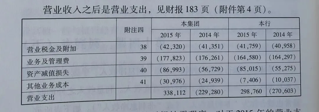 工商银行的营业支出由四项科目构成:营业税金及附加、业务及管理费、资产减值损失、其他业务成本。