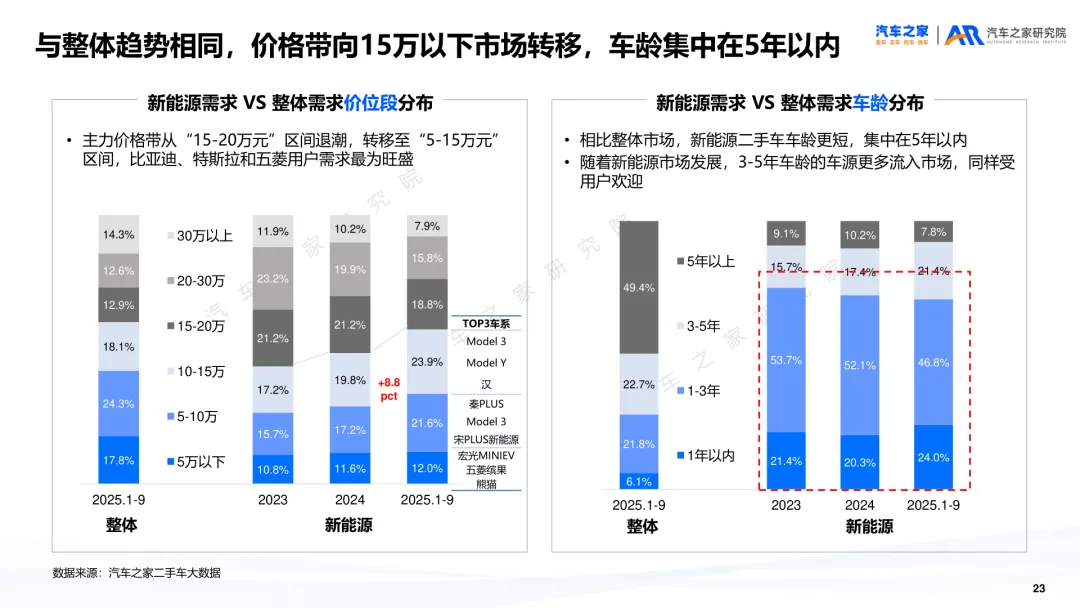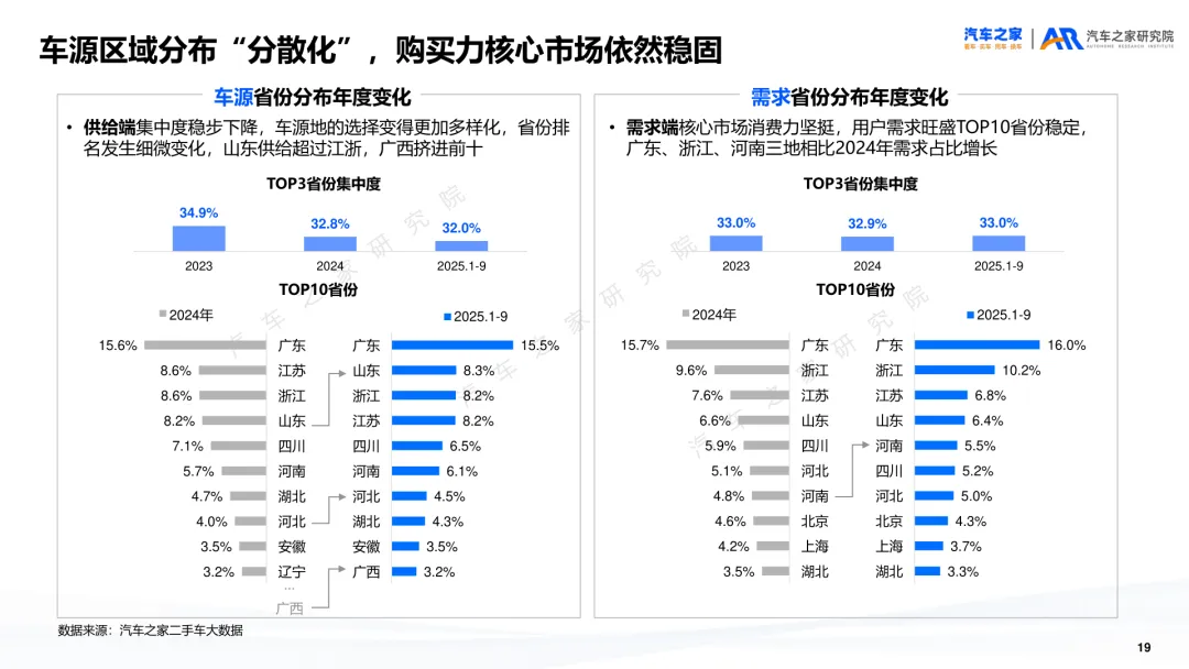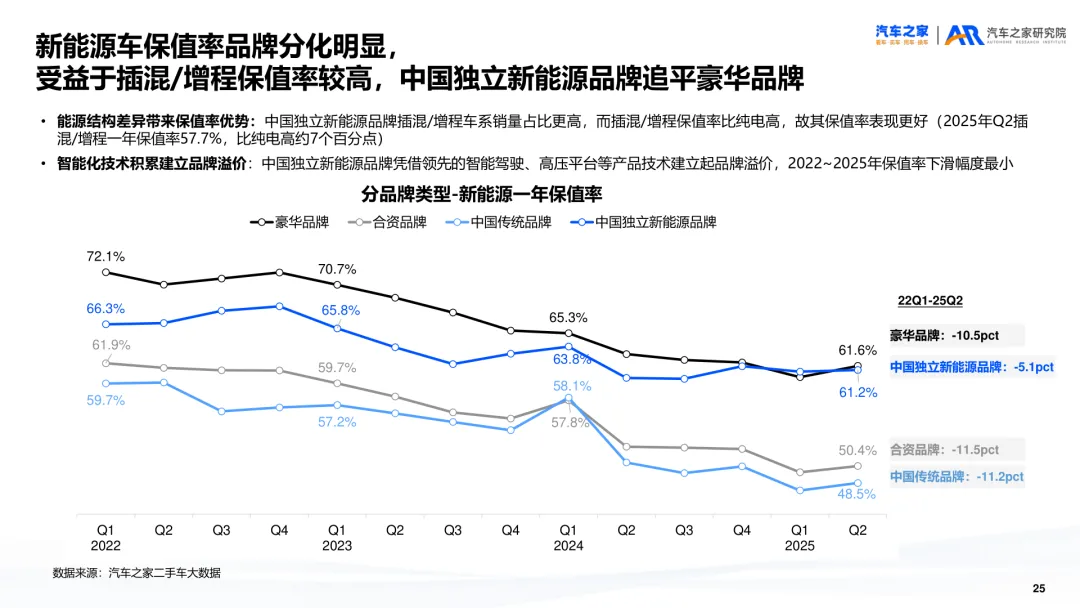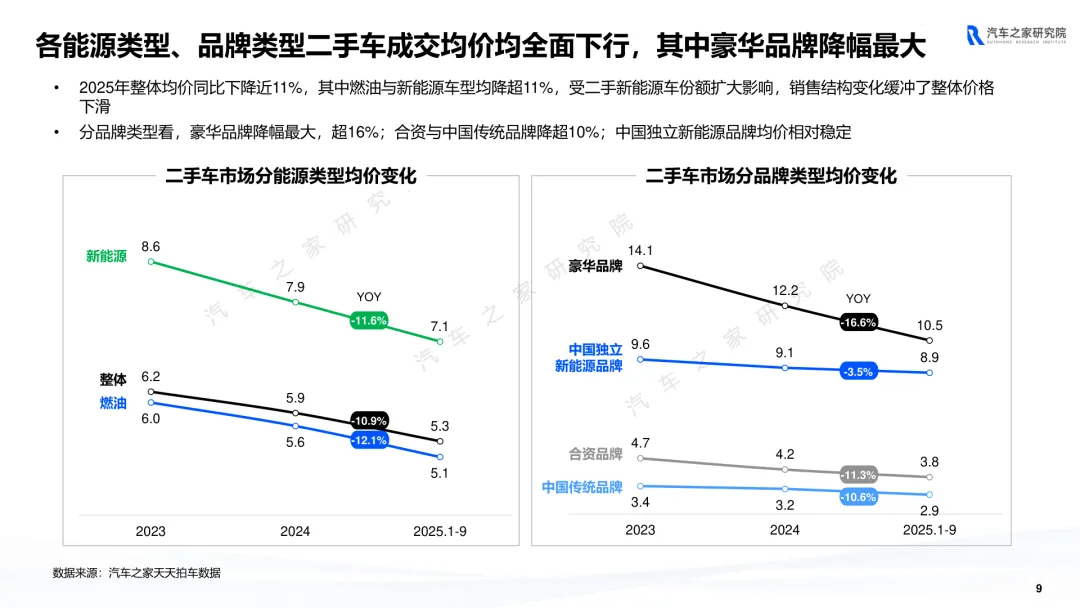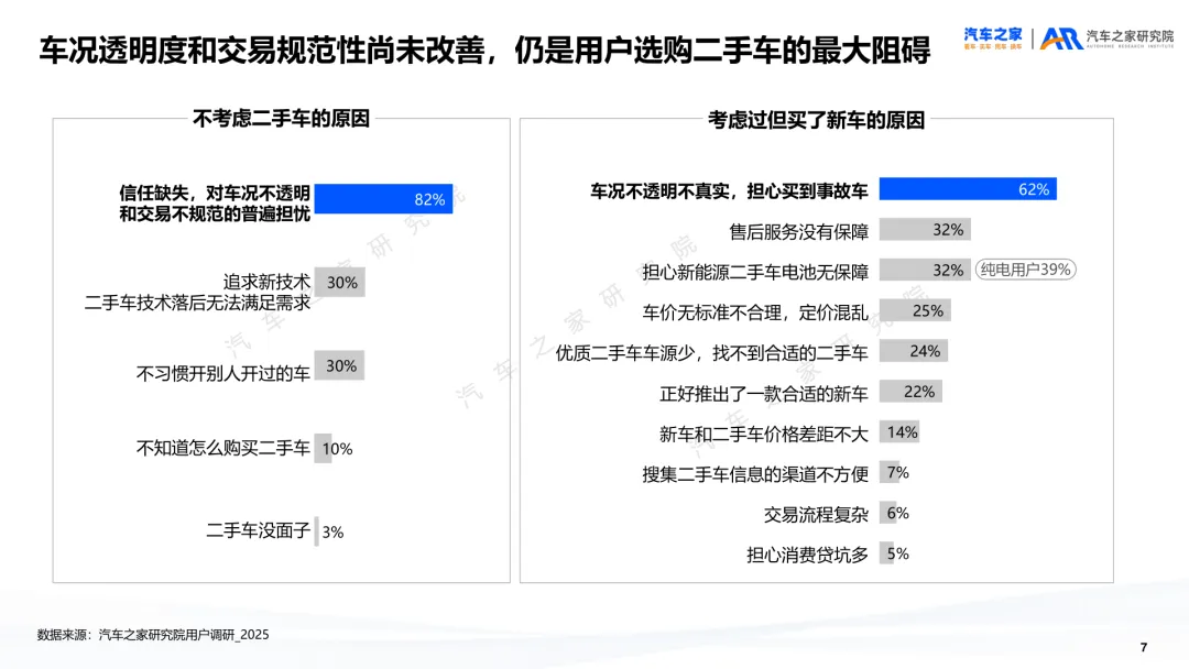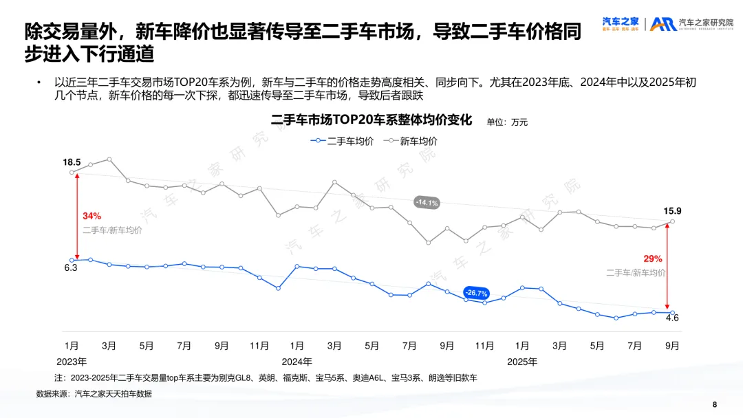 导读:报告聚焦二手车交易、供需及新能源细分市场动态,剖析行业发展特征与未来方向。二手车交易量增势放缓,受新车分流与价格波动影响,市场份额未获增长。近六成用户购车时兼顾新车与二手车,增换购人群对二手车接受度更高。车况不透明与交易不规范仍是用户选购主要顾虑,二手车价格同步新车下行,豪华品牌降幅最明显,保值率呈下滑趋势,新能源车型降幅大于燃油车。供需结构呈现多重变化,车源平均车龄增至 5.2 年,3-8 年车源占比扩大,15 万以下中低端市场成为供需主力。SUV 需求大型化趋势显著,中大型 SUV 及 MPV 存在供需缺口,品牌与区域分布更趋分散。新能源二手车占比不足 10%,线上需求活跃,价格带向 5-15 万元转移,品牌保值率分化明显,中国独立新能源品牌凭借插混 / 增程车型优势追平豪华品牌。