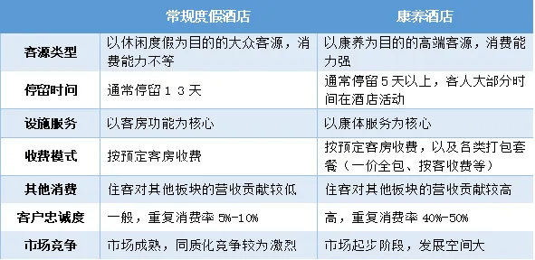 ◆ 康养酒店与常规度假酒店对比: