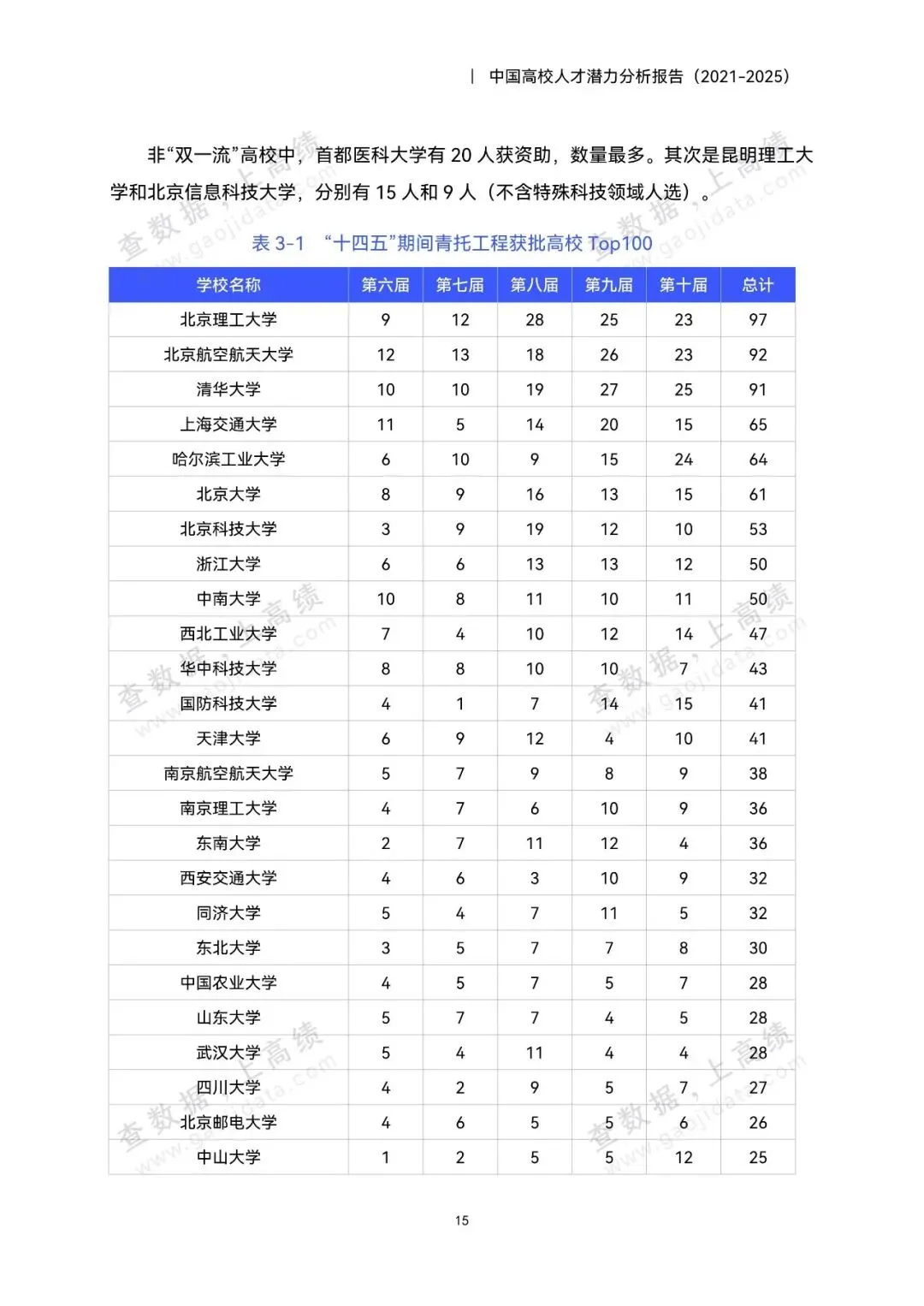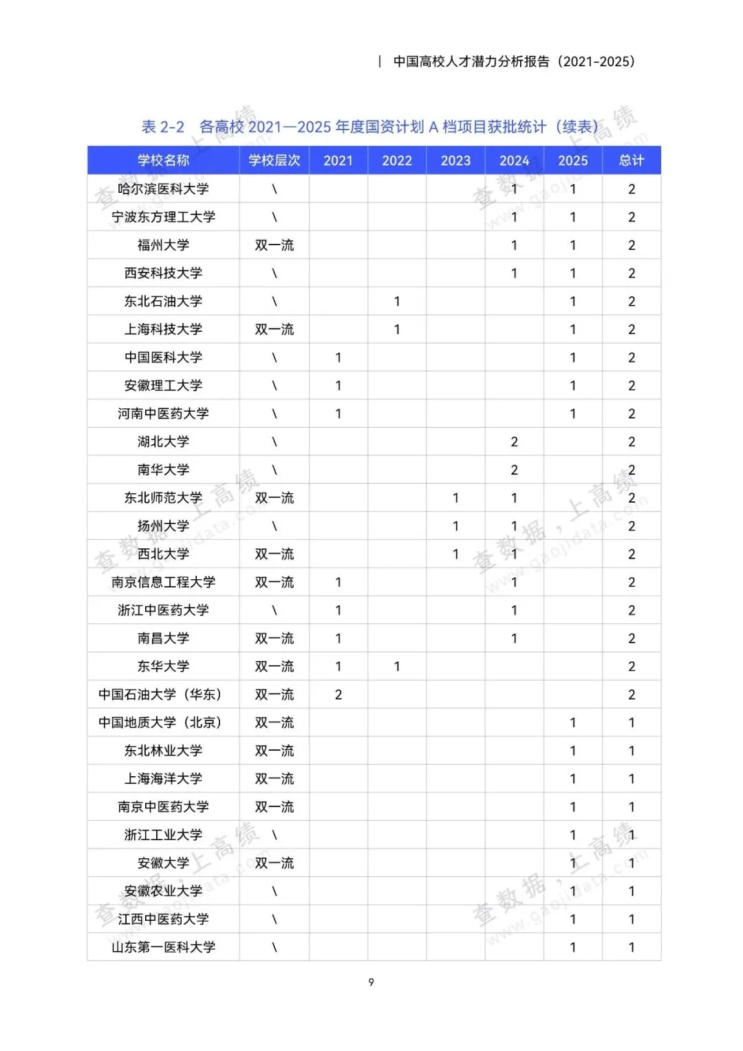 本报告立足三类青年人才项目的资助数据,系统梳理2021—2025年度全国高校的申报获批情况,为高校新时代人才政策的优化提供数据支撑与决策参考。