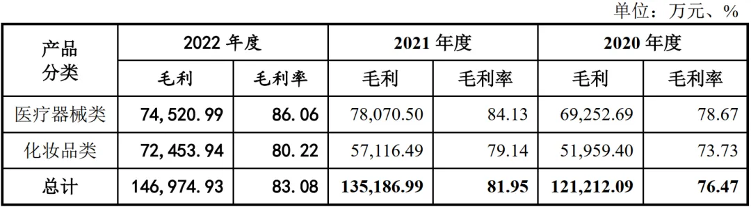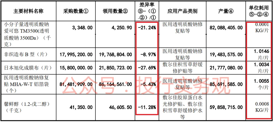 由上可知,公司16个亿的收入创造了多达8个亿的利润,可想而知公司的毛利率水平得是有多高:由上可知,发行人报告期内毛利率高达80%,而且还比同行业可比公司要高,监管机构估计也是看到发行人毛利率比较高,想观察下发行人盈利是否可以持续吧,还好,发行人终于得到同意注册文件,得偿所愿。说明原材料/产成品的采购价格和采购数量变动情况,主要原材料/产成品采购、领用数量与产量的匹配情况公司在与北星药业重组前,通过外部采购产成品获得主营业务产品,不存在自产产品情形;与北星药业重组后,公司拥有自主生产能力,直接采购生产用原材料,并自主加工制造产成品。因此, 2018 年 1 月至 2021 年 2 月仅存在采购和销售业务,仅 2021 年 3 月存在材料采购、领用及生产业务。2018 年-2022 年,主要产成品采购、产量、销量的匹配情况如下:2018-2022 年度,公司产量和销量均整体呈稳定上升的趋势,公司主要产品所涉产量、销量和营业收入符合公司实际经营情况,产销率/购销率均保持在 90%以上,公司产出的产品适销情况良好,与公司实际经营情况一致。2021 年,公司化妆品类产品产量/购买量下滑、产销率/购销率较高,主要系受宏观经济和物流波动影响生产产量有所下降所致。2021 年 2 月完成北星药业重组后,发行人通过北星药业采买原材料并开始自主加工模式。2021 年 3 月-12 月,发行人采购的主要原材料包括面膜布、铝箔袋、透明质酸钠等,具体采购情况如下:2022 年,公司主要原材料采购、领用数量与产量的匹配情况如下:从上表可以看出,发行人主要原材料采购、领用数量与产量相匹配。每月末生产部门根据销售部门的备货计划,提交生产用量审批工单,采购部门结合当前原材料的库存情况采购原材料。原材料到货验收入库,财务部门根据金蝶系统中采购订单下推的采购入库单金额借记“原材料” 。生产部门依据生产订单下达领料单,领取原材料,于原材料出库时,借“生产成本-直接材料” ,贷“原材料” 。归集车间生产人员工资、奖金、社保、公积金及福利费,计入借“生产成本-直接人工” 。归集车间生产车间所耗用的水、电、蒸汽及机器设备的折旧等费用,计入“生产成本-制造费用” 。财务部门每月末获取生产部门工时表,将各产成品耗用工时录入系统成本模块,系统依据当月各产品耗用的工时占当月生产车间总耗用工时的比例,将直接人工和制造费用分摊至各产品。产成品生产完成入库时,将生产过程中归集的直接材料、直接人工、制造费用作为产成品成本结转,借“库存商品” ,贷“生产成本-直接材料” ,贷“生产成本-直接人工” ,贷“生产成本-制造费用” 。2、直接材料、直接人工、制造费用、加工费的归集和分配方法,产品成本结转方法公司在与北星药业重组前,通过外部采购产成品获得主营业务产品。2021年 2 月完成北星药业重组后,公司主要自主生产相关产品。直接材料主要归集生产所需要的主料及相关辅料,生产部门根据排产计划制作领料单,领取物料,投入生产,生产过程中,依据实际用料量制作补/退料单,对领料量进行调整。领/补/退料单列示信息包括领取物料名称、型号、批号、数量、仓库、生产的产成品名称、规格、生产车间等信息,产品生产完成并由生产订单下推制作产成品入库单。物料领取采用月末一次加权平均法核算,财务部门依据领/补/退料单直接指向的产成品及月末计算的领取物料的金额归集直接材料成本。直接人工主要归集生产部门人员的工资、奖金、社保、公积金及福利费。制造费用是指企业为生产产品和提供劳务而发生的各项间接费用,主要归集生产所需要的燃料动力水、电、蒸汽及机器设备的折旧费用等。财务部门每月末将各产成品耗用工时录入系统成本模块,系统依据当月各产品耗用的工时占当月生产车间总耗用工时的比例,将直接人工及制造费用分摊至各产品。加工费主要核算公司委托第三方为面膜布折叠组装、辐照灭菌产生的费用。折膜费用以贴为单位收取,直接计入委外产品的存货成本。辐照灭菌大多以箱、瓶或箱瓶混合的形式进行,无法准确归集至具体产品,收回委托加工产品后,将辐照灭菌产生的相关费用计入制造费用,按照制造费用的分配方法分摊至各产品。公司采用月末一次加权平均法计算产品当月发出的单位成本,结合当月各产品的销售数量结转销售成本。由于部分同行业上市公司未披露营业成本的核算及结转相关信息,仅选取了以下两家同行业上市公司进行对比:经查询可比公司公开资料,贝泰妮和华熙生物披露的直接材料、直接人工及制造费用的归集方式与公司一致,创尔生物和珀莱雅未披露直接材料、直接人工及制造费用的归集方式。从存货的结转方法来看,贝泰妮采用月末一次加权平均法结转存货成本,与公司结转方法一致;华熙生物采用个别计价法,创尔生物采用加权平均法,珀莱雅采用移动加权平均法。可比公司存货的结转方法略有差异,但以加权平均为主,公司营业成本的结转方法与同行业上市公司不存在重大差异。产品成本主要包括直接材料、直接人工及制造费用,成本核算的过程和控制的关键环节为直接材料的归集、直接人工和制造费用的分配。每月末销售部门制定备货计划,由生产部门按照备货计划计算原材料的生产用量并制定生产计划,提交生产用量审批工单,