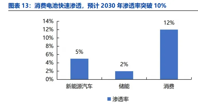 消费:据SMM预测,消费电池由于对能量密度要求更高,叠加用户体验升级等因素,成为固态电池商业化落地的试验田,渗透率有望率先突破10%。