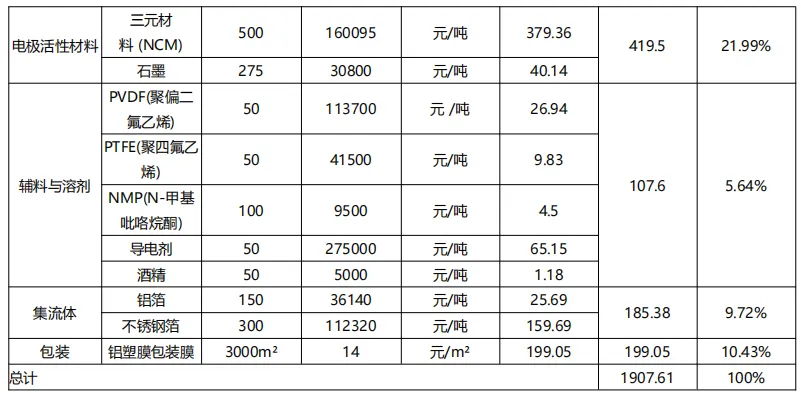 正极材料和固态电解质是氧化物半固态电池的主要成本来源。对于氧化物半固态电池,正极材料成本占比最高,约为 65%,其次为固态电解质,成本占比约为 20%,和锂离子电池的成本结构具有明显差异。