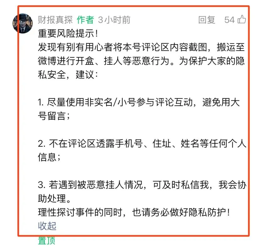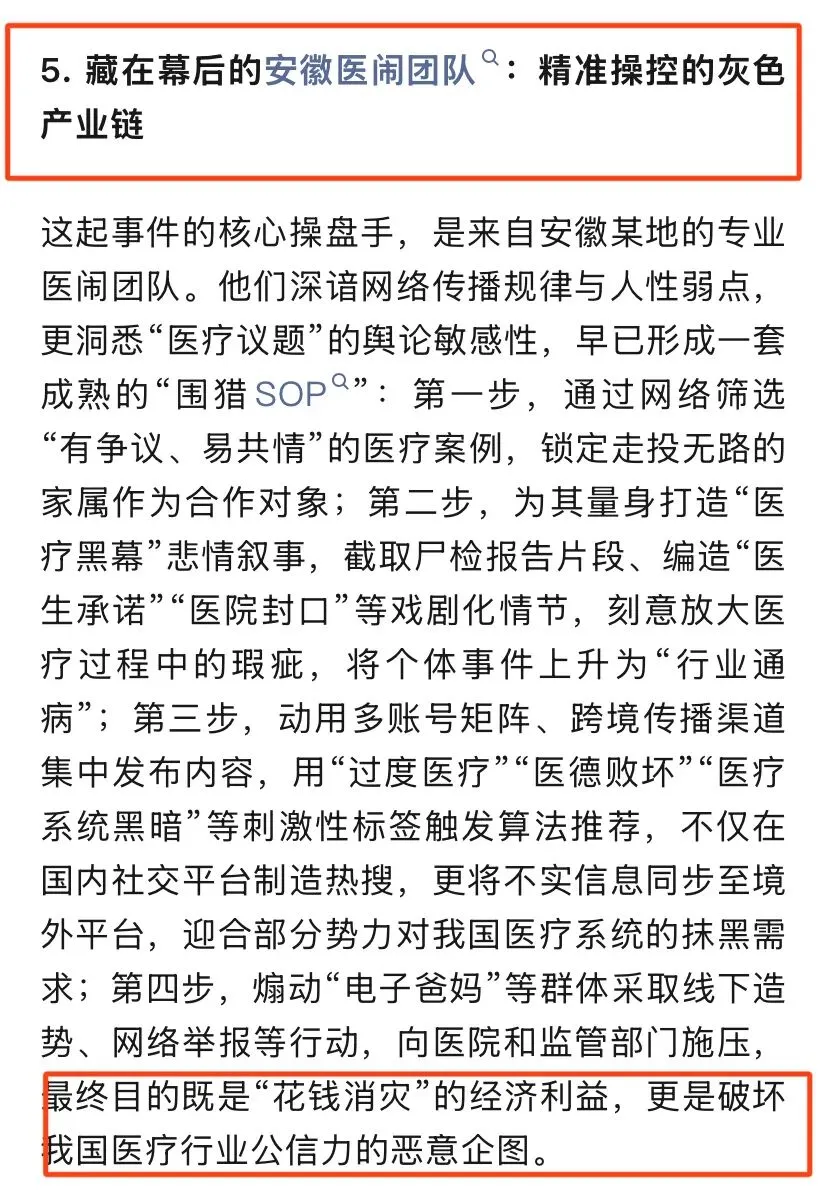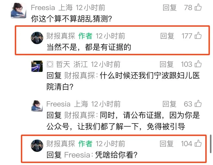 这个“财报真探”直接说小洛熙父母的维权是半路夫妻的“绝境维权”假象,成了医闹团队眼中最完美的“前台演员”。试问,在毫无证据的情况下,“财报真探”说的这些内容算不算是造谣传谣?真可谓是诛心的手段。把原本科学的追问真相,成功的转移到了对小洛熙父母疯狂扣帽子...这个“财报真探”直接说小洛熙是基因缺陷下的生命困境,手术是挽救其生命的关键选择。在真相还没有出来的时候,这个“财报真探”,一个原本写财经的,却神通广大的知道了“真相”。这算不算是造谣传谣?这个“财报真探”是闭口不谈,手术两三小时,最终做了九个小时...我发现啊,这个“财报真探”时不时的不忘夸奖一下主刀医生陈某某。这个陈某某在“财报真探”眼中是宅心仁厚的医者。而小洛熙父母在“财报真探”眼中竟然是蓄意谋杀,不配为人父母。全部所有责任都在小洛熙父母。这可是“财报真探”说的原话。要知道,宁波WJW情况通报中,明确该医疗团队在诊疗过程中存在风险评估不足、手术操作过失、术中突发情况告知不及时等问题。关注小洛熙事件的人,无非也就是想要一个真相。可在“财报真探”眼中,却成了抹黑医疗系统的帮凶。可以说,这个“财报真探”真的是坏到脚底流脓,挑拨是非,恶心至极。这个“财报真探”说小洛熙事件藏着幕后的安徽医闹团队。说的真的是有鼻子有眼的。我就没搞明白,这个“财报真探”为什么不去让医院自证清白?拿出有说服力的证据。反而,直接给小洛熙父母扣上了医闹的帽子?在这篇文章下面,“财报真探”有两条留言很有意思,“财报真探”还不忘了风险提示:“财报真探”说它写的“都是有证据的”,还说“凭啥给你看”。说真的,这个“财报真探”这些疯狂行为,真的超出了我一个正常人的认知。小洛熙在医院去世,不应该要求医院提供让人心服口服的真相吗?“财报真探”倒好,都是在要求小洛熙父母,甚至曝光小洛熙父母隐私:话又说回来,小洛熙父母是什么人?和手术又有啥关系?“财报真探”不去追问真相,反过头来要求小洛熙父母提供这,提供那,甚至要求小洛熙父母接受公众与官方的双重监D:“财报真探”啊“财报真探”,网络不是法外之地。人在做,天在看,劝你好好做个人吧。