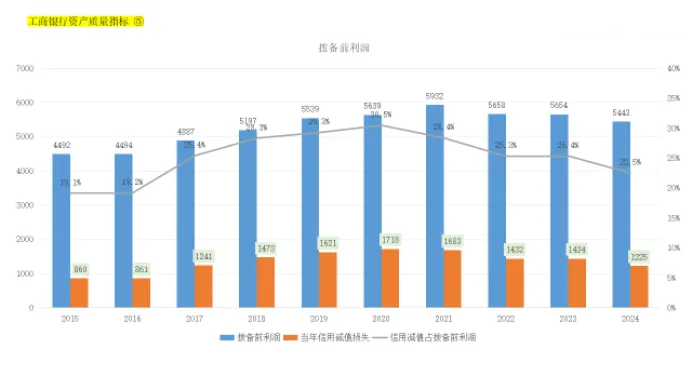 2024年拨备前利润为5443亿,比2023年下降3.7%,2024年归母净利润为3659亿,相比2023年3669亿同比下降了0.3%,在2024年税率与2023年税率基本保持不变的情况为了有3.4%的差异,原因就出在2024年比2023年少计提了209亿损失,这与目前的经济状况持续恶化的现状是不符的,是合法调节报表的行为。