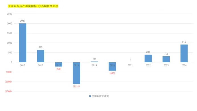 关注类贷款是不良贷款的预备役部队,2024年新增关注贷款金额与关注率都在上升,是不好的趋势,这个趋势和招商银行一致。