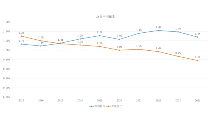 总资产回报率持续下降,趋势同招商银行一致。
