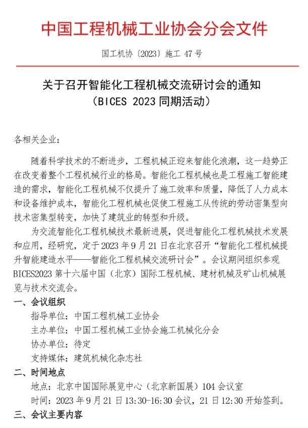 智能化工程机械交流研讨会通知