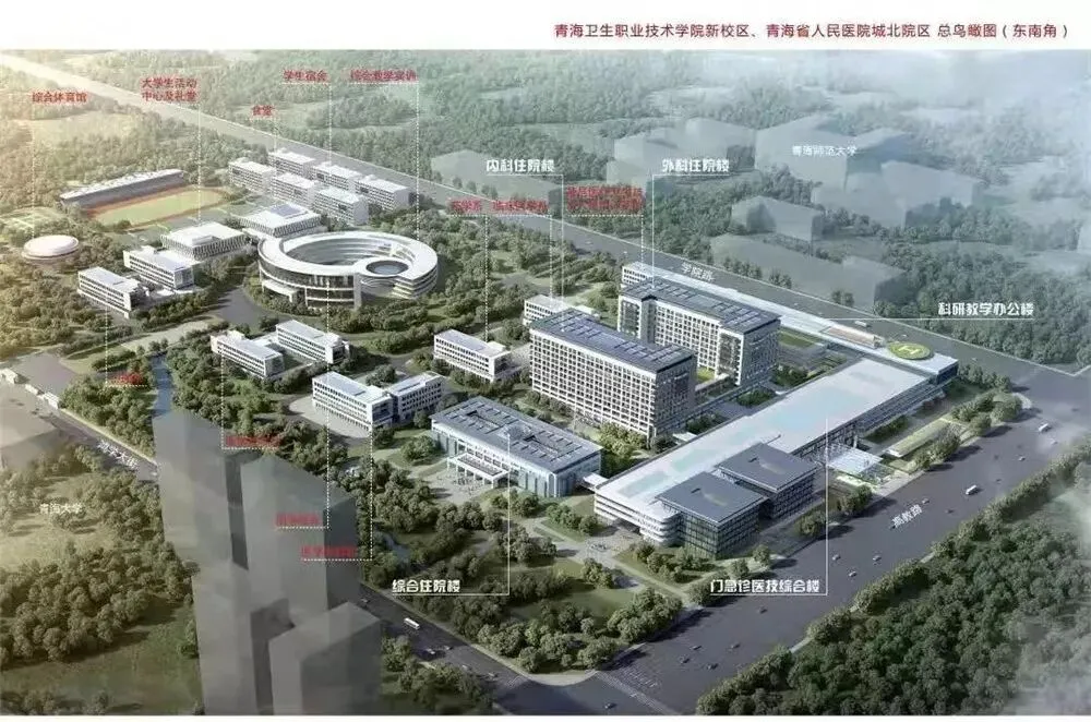 青海卫生职业技术学院新校区建设项目位于西宁市城北区高教园区中央区域,占地面积约340780.35㎡,是青海省重点建设项目和一类民生工程。