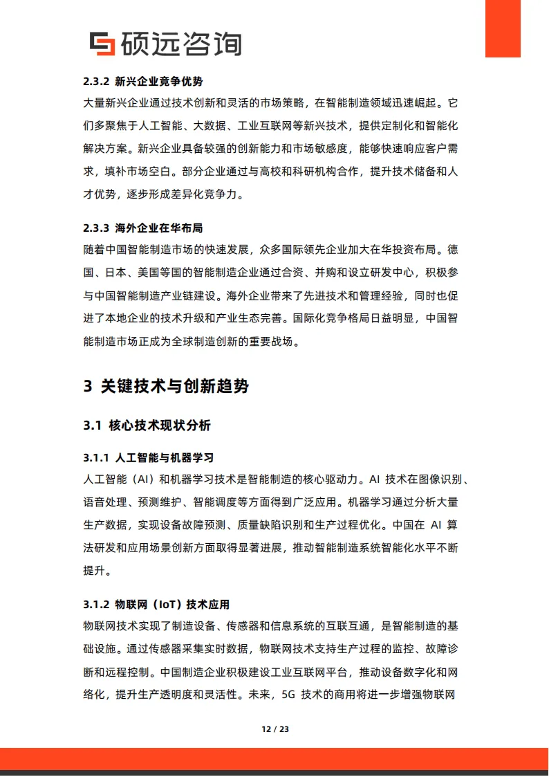 竞争格局上,海尔、华为等龙头企业凭借产业链优势与研发实力占据 40% 以上市场份额,新兴企业聚焦 AI、工业互联网等领域实现差异化竞争,海外企业通过合资、研发中心设立等方式加大在华布局,推动市场国际化竞争。核心技术方面,人工智能与机器学习赋能故障预测、智能调度;物联网实现设备互联互通与实时监控;大数据与云计算支撑海量数据处理与资源共享,为智能制造提供核心支撑。