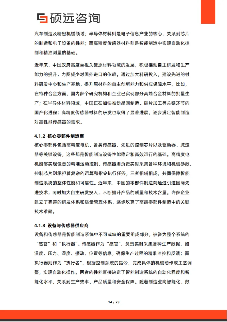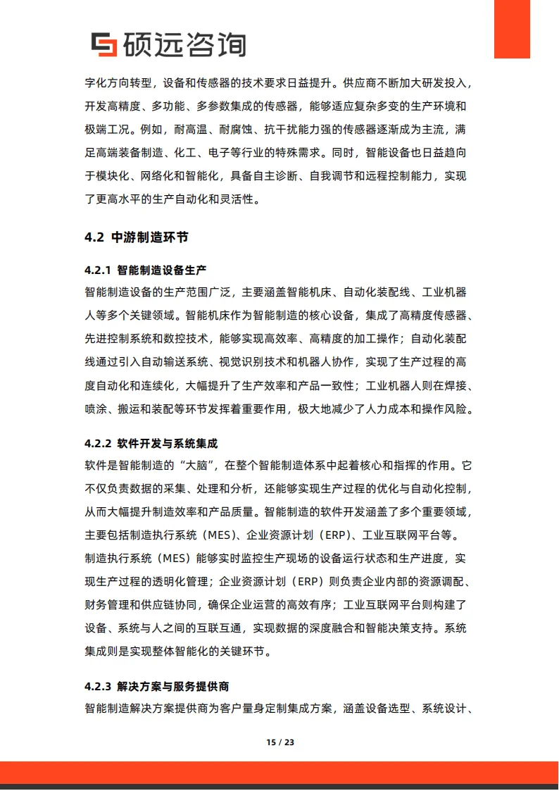 产业链已形成完整体系:上游依赖特种合金、半导体材料等关键原材料及高精度电机、传感器等核心零部件供应,国产化替代进程加快;中游涵盖智能设备生产、软件开发与系统集成,MES、ERP 等软件成为智能制造 “大脑”;下游应用以汽车制造、电子信息产业为成熟场景,医疗器械、航空航天等新兴领域快速拓展。