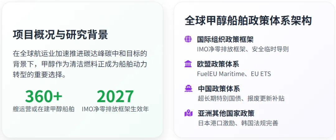 本报告旨在全面梳理全球主要航运国家和地区的甲醇船舶政策支持体系,涵盖从国际组织到地方港口的四级政策架构,分析内河船、沿海船、远洋船等不同船型的差异化政策,从船东、船厂、投资者、政策研究者等多个视角评估政策效果,并深入研究具体的补贴申请流程和典型案例。通过系统性的政策分析,为相关利益主体提供决策参考,推动甲醇船舶产业的健康发展。