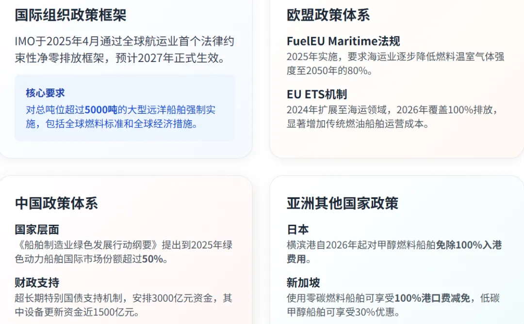 通过对全球甲醇船舶政策支持体系的全面分析,可以看出,在 "双碳" 目标引领下,甲醇船舶正迎来历史性的发展机遇。从国际组织的规则制定到各国政府的政策支持,从技术标准的建立到基础设施的完善,一个支持甲醇船舶发展的全球政策体系正在形成。