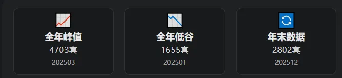 年初的1655套是全年低谷,随后在3月达到4703套的峰值,显示出强劲的市场需求。至12月回落至2802套。