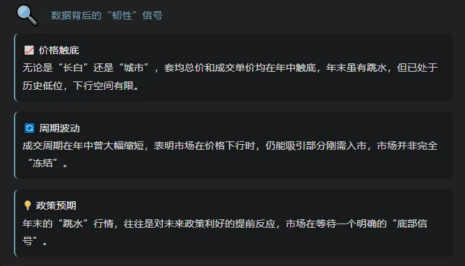 2025年长白地区呈现“价格触底反弹、成交量低位徘徊、成交周期年末拉长”的复杂局面。