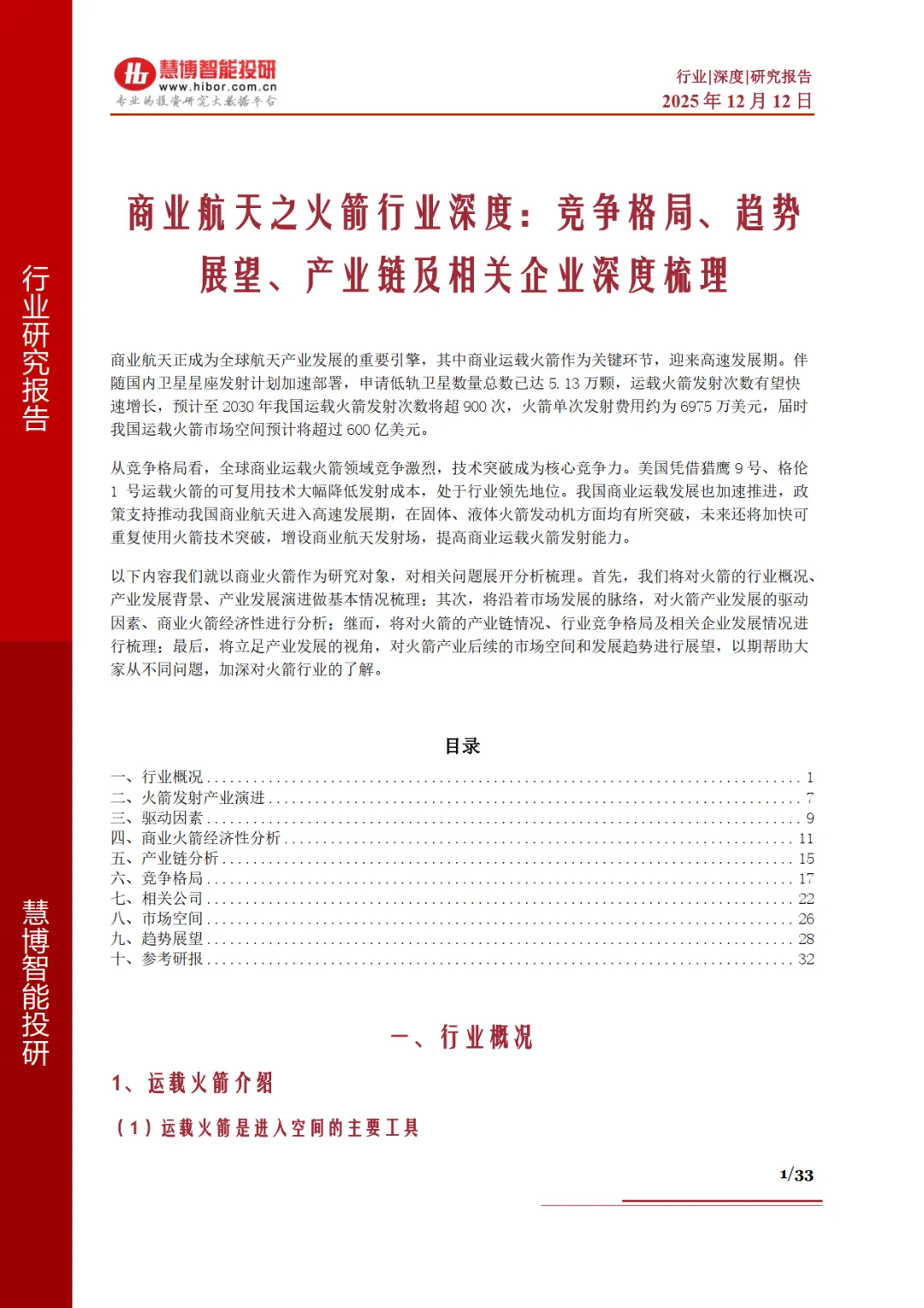报告聚焦商业航天火箭行业的发展格局、产业链、市场空间及趋势,核心分析行业驱动因素与投资机遇,关键内容如下: