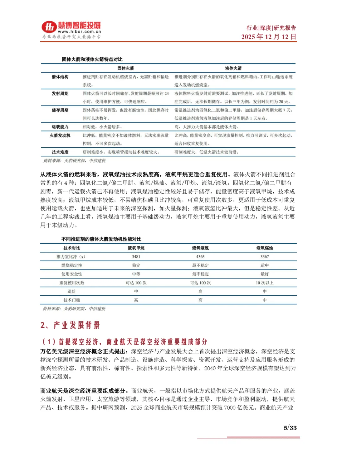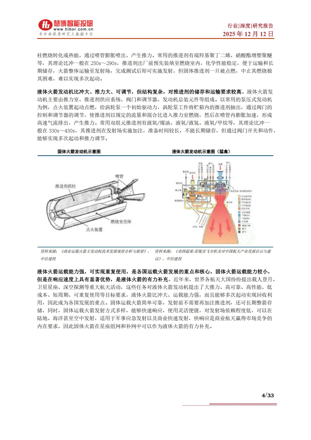 行业处于高速增长期,市场空间广阔。商业航天作为深空经济核心组成,全球市场规模预计 2025 年突破 7000 亿美元,火箭发射是核心环节。我国低轨卫星星座部署加速,申请低轨卫星达 5.13 万颗,预计 2030 年发射次数超 900 次,市场空间将达 632 亿美元。火箭按推进剂分为固体与液体类型,固体火箭响应快、适用于应急发射,液体火箭推力大、可重复使用,是未来主流方向,液氧甲烷燃料因清洁高效成为复用火箭优选。