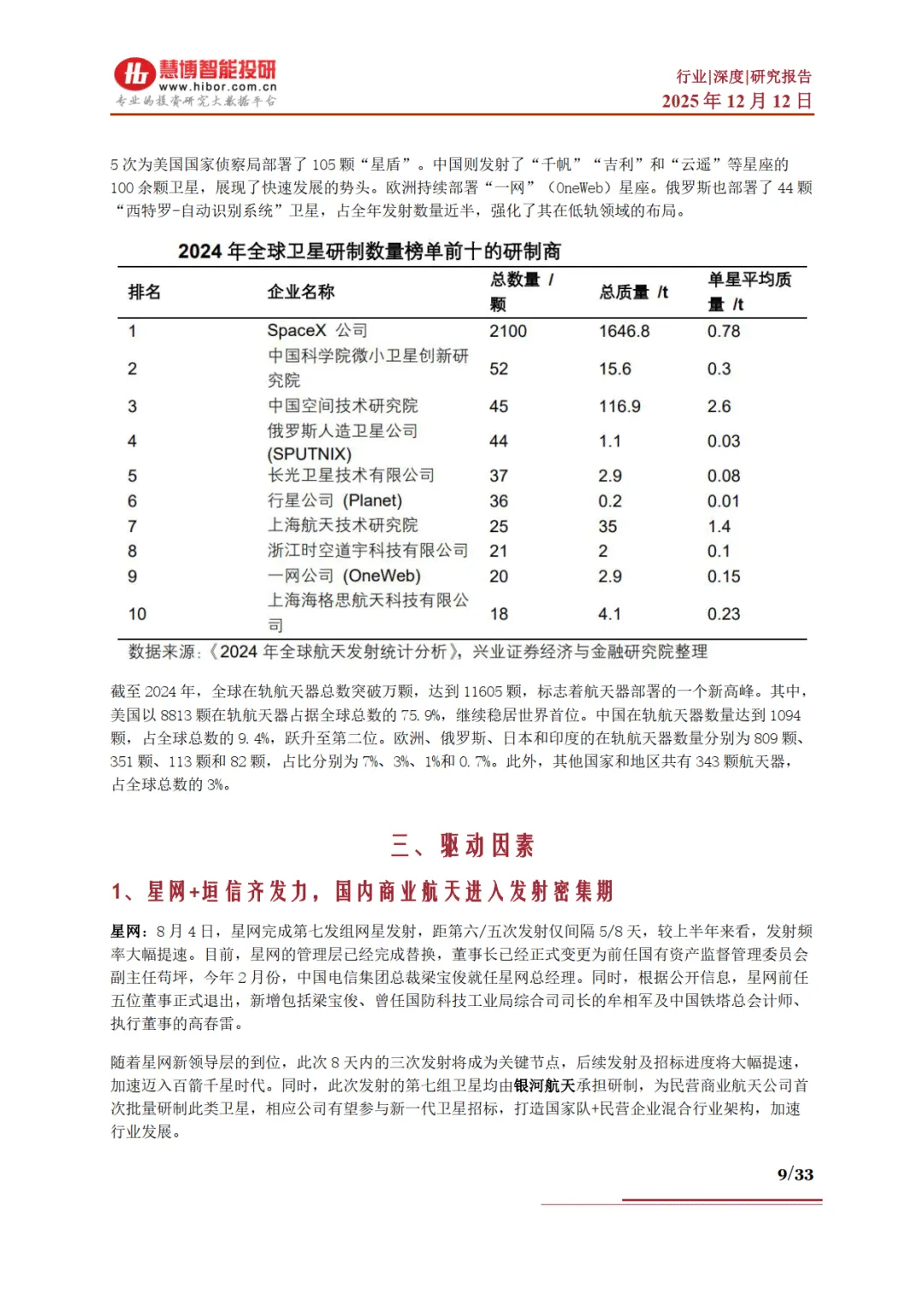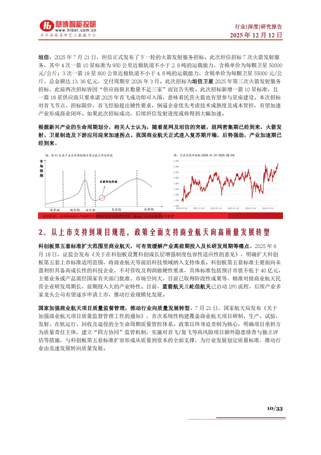 行业驱动因素多元,政策与需求双轮发力。国内星网、垣信等星座进入密集组网期,发射频率大幅提升,民营火箭企业逐步参与招标。政策层面,科创板第五套标准扩容支持商业航天企业上市,全生命周期质量管控政策推动行业高质量发展。低轨卫星组网需求爆发,全球 2022-2031 年小卫星发射量预计增长超三倍,带动火箭发射需求持续攀升。