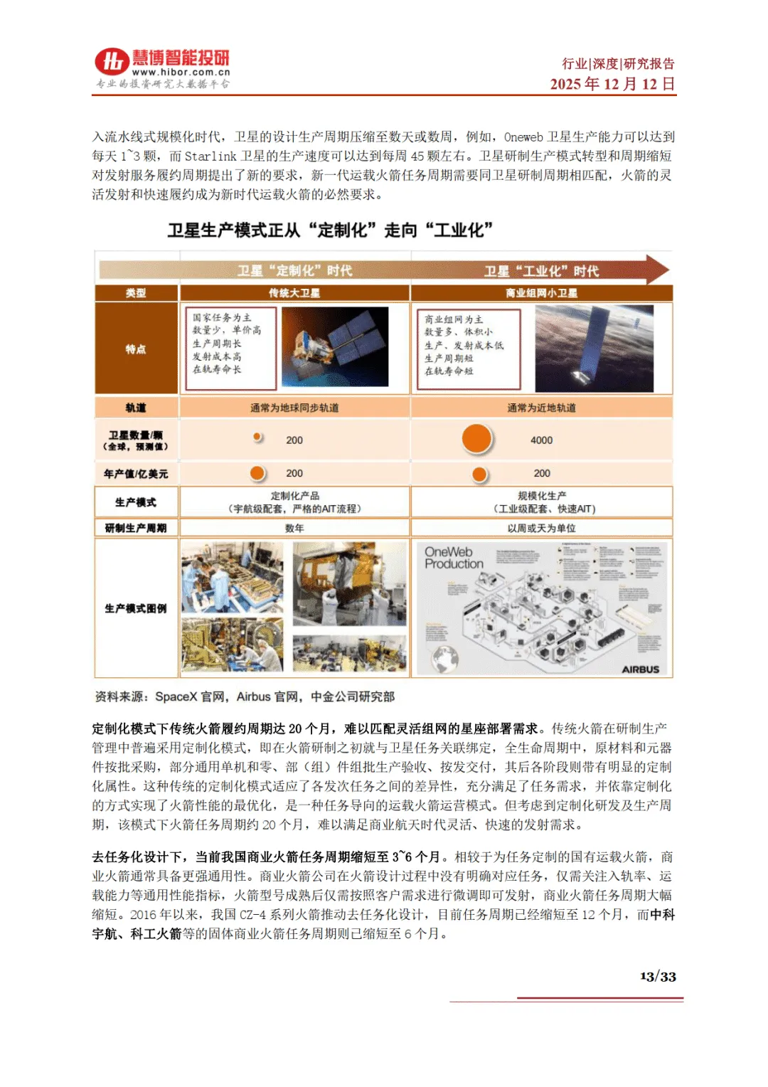 未来趋势明确,技术迭代与产业升级并行。可回收火箭成为核心方向,2025-2026 年多款民营复用火箭将集中首飞,预计 2027-2028 年发射效率显著提升。液体火箭主导市场,结构材料向轻质高强升级,不锈钢、铝锂合金、碳纤维复合材料广泛应用。卫星产业链与火箭制造产业链协同受益,火箭成本下降将加速卫星组网,带动上下游环节持续增长。