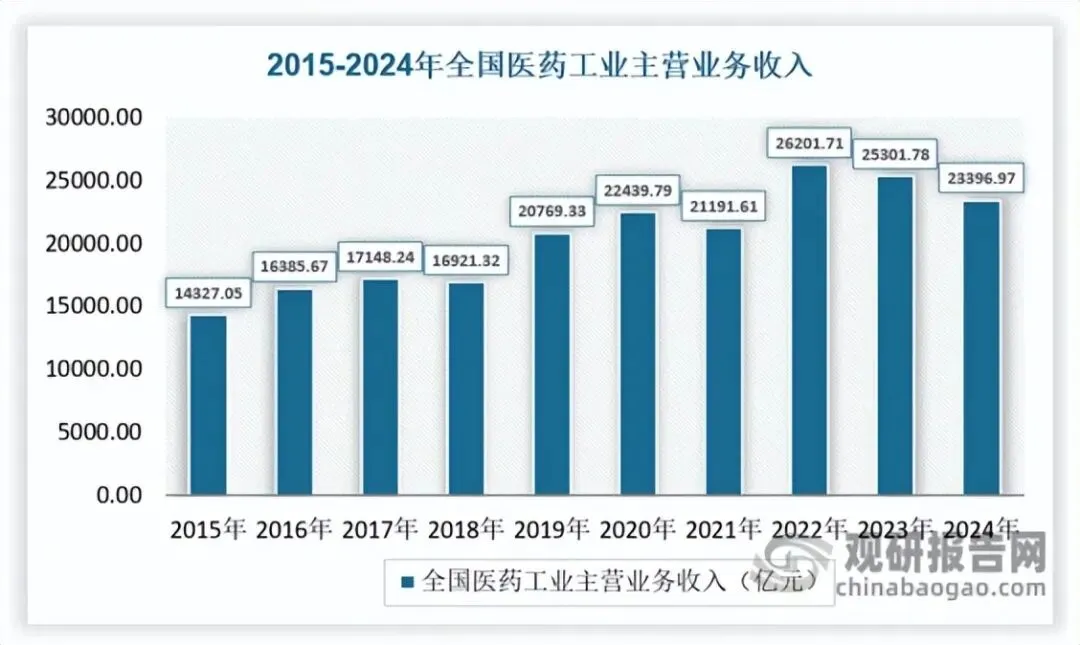 医药制造业是关系国计民生的重要领域,也是我国国民经济的重要组成部分。我国人口众多,药品刚性消费需求巨大,带动医药制造业长期迅速发展。近年来,受医保控费、两票制、带量采购等改革措施影响,我国医药制造业顺应市场变化,推进医疗体制改革,整体市场遭遇一定的下行压力、增速有所放缓,产业规模虽受到一定影响,仍维持在较高水平。根据国家统计局数据,2024年我国医药工业主营业务收入达到23396.97亿元。其中,中药饮片是我国医药制造业发展较快的细分市场之一,是我国医药制造业的重要组成部分。