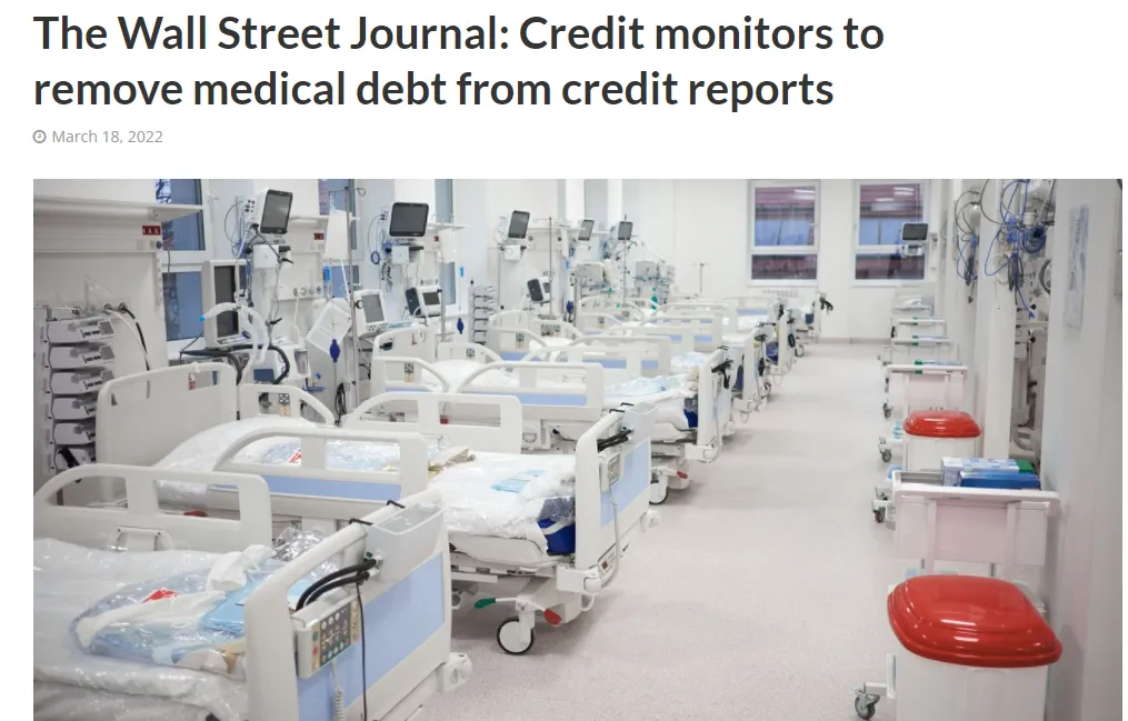 已支付的医疗债务从个人信用记录中删除(此前,这些债务可以在消费者的信用报告上停留长达7年,即使它们已被还清)。