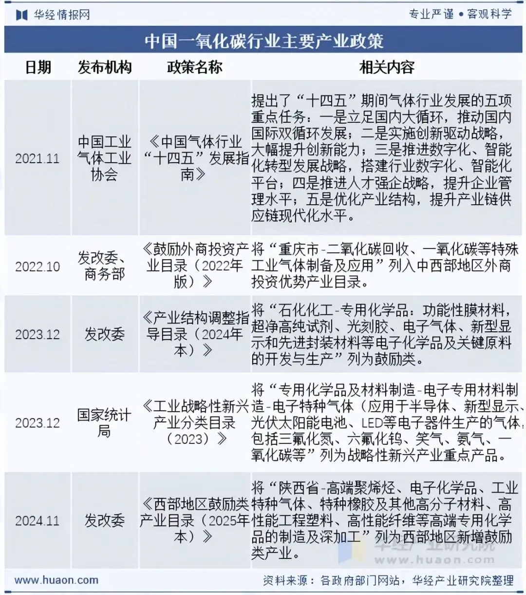 相关报告:华经产业研究院发布的《2025-2031年中国一氧化碳行业市场深度研究及投资潜力预测报告》