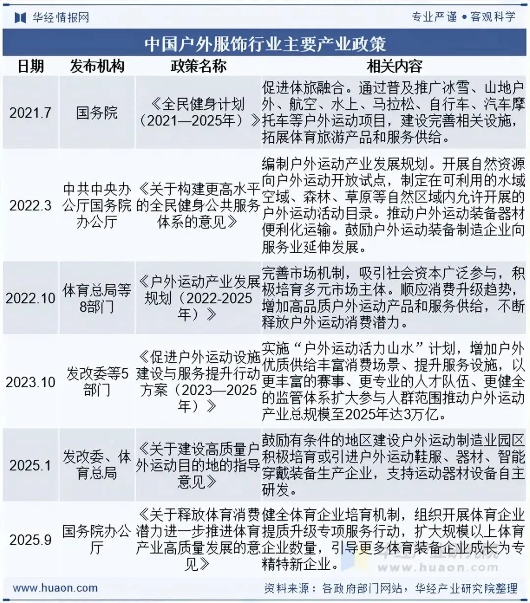 相关报告:华经产业研究院发布的《2025-2031年中国户外服饰行业市场全景监测及投资战略研究报告》