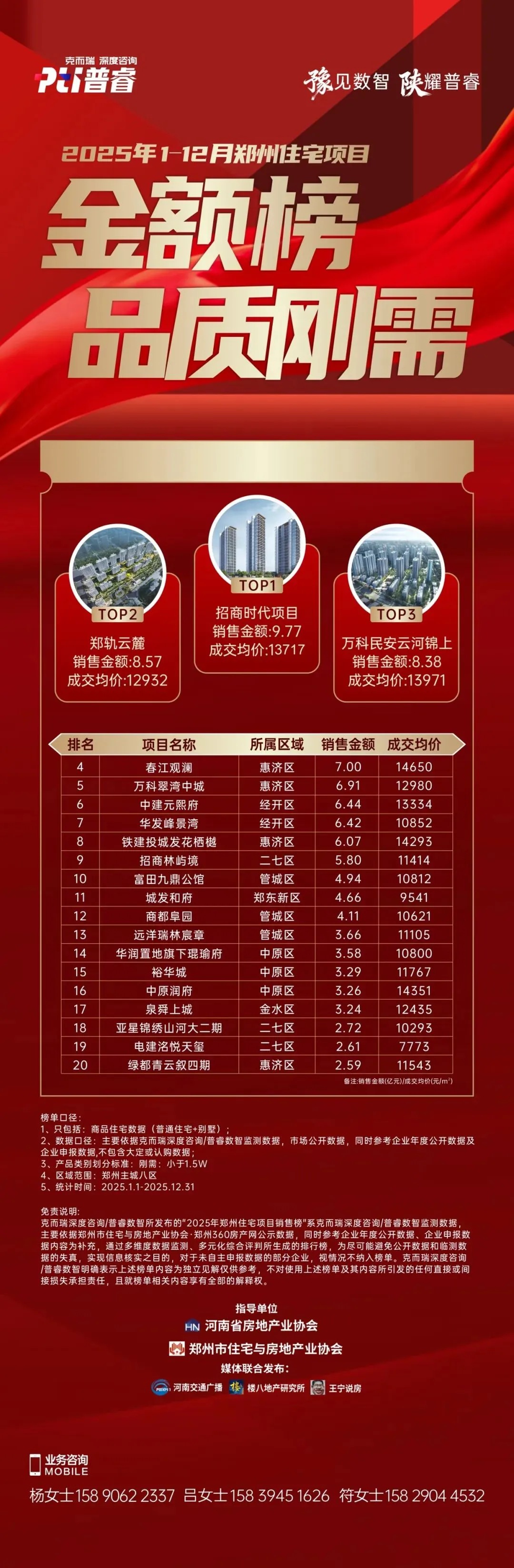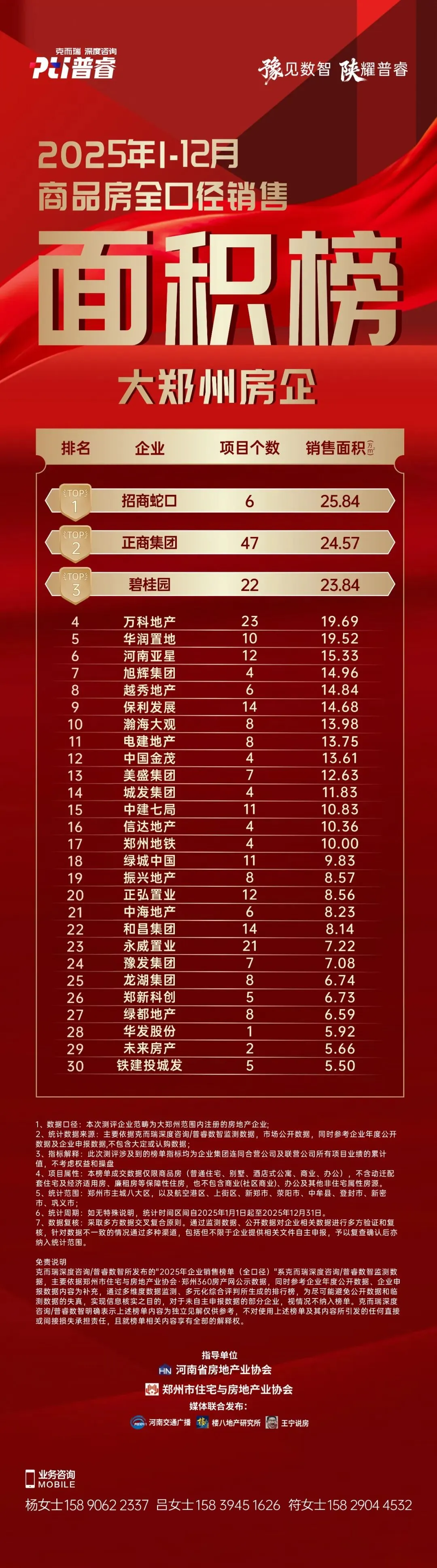 本次发布的2025年度郑州房企商品房全口径销售排行榜,用数据来呈现房企的业绩表现: