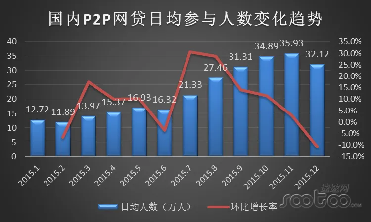 速途研究院2016年2月18日报告(分析师 侯长海)P2P网贷行业在2015年可以说是飞速发展,多元化的投资模式,弥补了当前中国传统金融业务上的缺失,因其高利率、回报快的特点收到越来越多的投资者追捧。然而在市场初期,过度的扩张并非良性,中国P2P市场上的问题平台不断,e租宝等事件给众人敲响警钟,投资者从激情开始回归理智。为规范网络借贷信息中介机构业务活动,促进网络借贷行业健康发展,2015年年底银监会会同工业和信息化部、公安部、国家互联网信息办公室等部门研究起草了《网络借贷信息中介机构业务活动管理暂行办法(征求意见稿)》,成为P2P市场发展的又一里程碑。