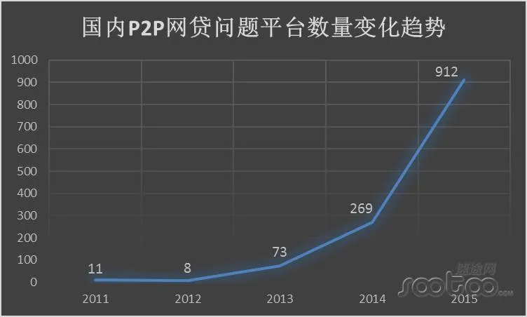 P2P市场的高速发展伴随着乱象丛生,P2P网贷的问题平台数量增速甚至较整体市场更胜一筹。进入2014年网贷问题平台数量极速上升,跑路等事件路见不鲜,行业负面新闻不断,2015年国内问题平台达到912家,较上年翻了3倍,从2015年下半年开始,政府对于网贷行业的监管措施全面展开。2015年7月18日央行等十部委发布《关于促进互联网金融健康发展的指导意见》,首次明确了互联网金融的边界、业务规则和监管责任。明确了P2P直接借贷行为属于民间借贷范畴,受合同法、民法通则等法律法规以及最高人民法院相关司法解释规范。