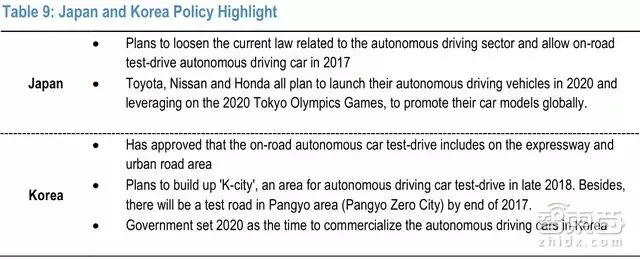 国际方面,政策将推动智能汽车的市场渗透。2018年5月起,全美出售的汽车都将装备后视摄像头。在欧盟,汽车制造商们(OEMs)将不得不提高自己的安全系数,包括紧急制动、自适应巡航控制等,从而在欧洲新车评估测试(NCAP)的碰撞试验中获得五星。日本预计将在2017年允许自动驾驶汽车上路测试,韩国将首先开放试验区,然后允许自动驾驶汽车真正推广。