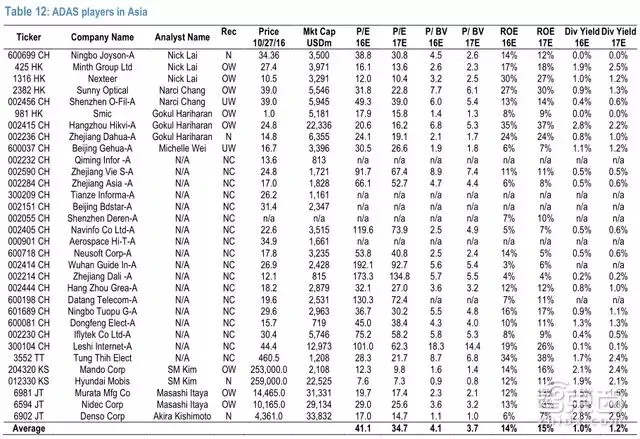 这是一家光学零件及光电产品生产商,占汽车镜头30%的市场份额,主要合作商包括智能汽车预警系统Mobileye以及其他一些以及供应商,目前市值542300万美元。