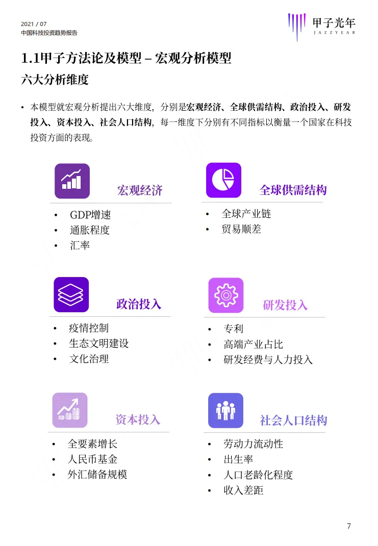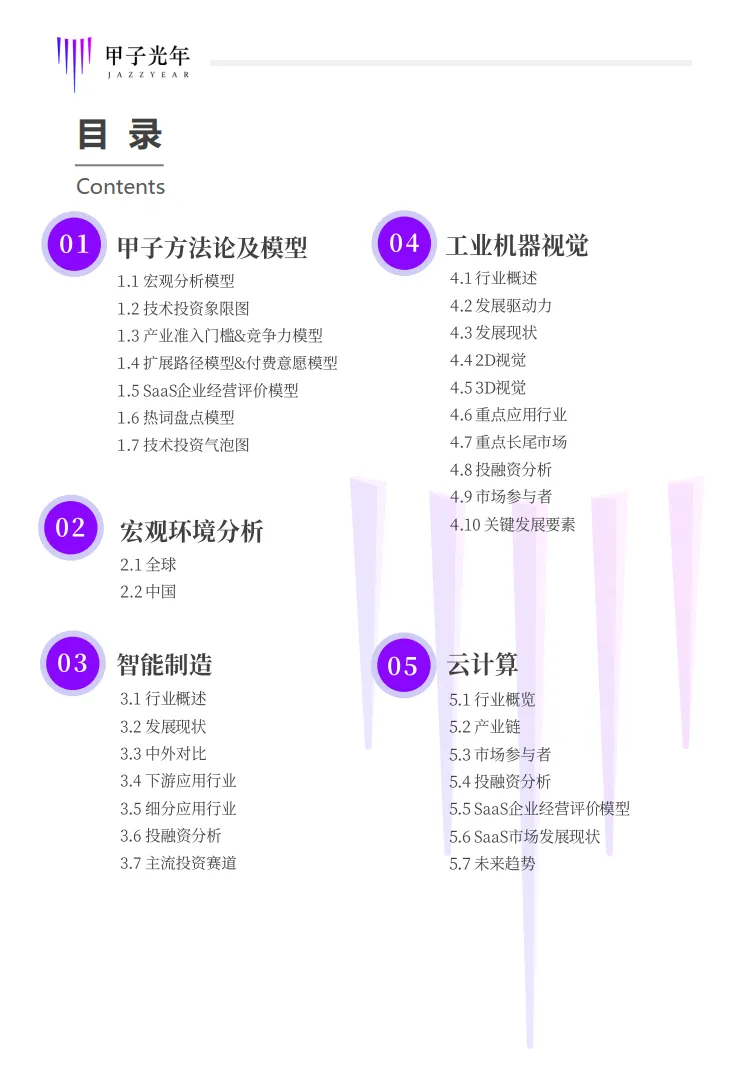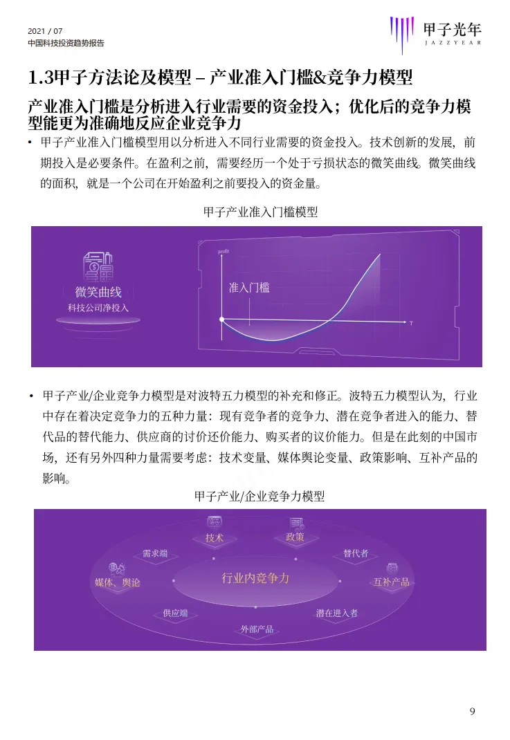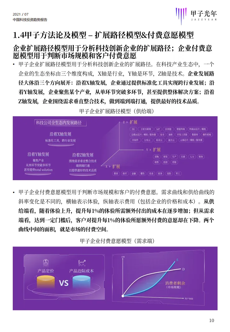 本报告采用了甲子智库提炼总结的独家科技产业分析模型:甲子智库宏观分析模型、甲子产业准入门槛模型、甲子产业/企业竞争力模型、甲子企业扩展路径模型(供给端)、甲子企业付费意愿模型(需求端)、整体技术投资象限图等。