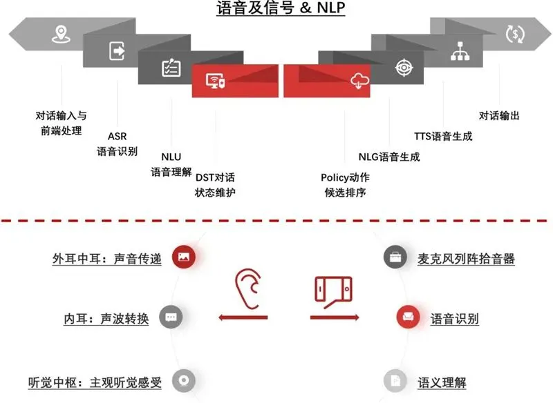 智能语音的发展始于上世纪八十年代,迄今已经历了三个阶段:1980s-2010为起步期:语音识别开始从孤立词识别系统向大量词汇连续语音识别系统发展;2011-2015为变革期:微软DNN(深度神经网络)的出现使识别错误率第一次大幅降低,降幅约90%,技术与产品开始大发展;2016至今为落地期:机器语音识别准确率第一次达到人类水平,约95%,智能语音技术进入落地期,智能语音助手、智能音箱相继落地。但是,相比于机器视觉,智能语音的落地进程相对落后。机器视觉企业在全球AI企业中占比40%、在国内占比46%;是国内外AI企业最集中的领域。主要有两方面原因,一方面其数据的体量、密度相对有限,另一方面其涉及的声学研究、模式识别研究、通用NLP研究及垂直场景的深度语义理解等还未完全成熟(尤其2016年以前),因此在交互体验、使用效果、场景优化等方面都仍有较大空间。