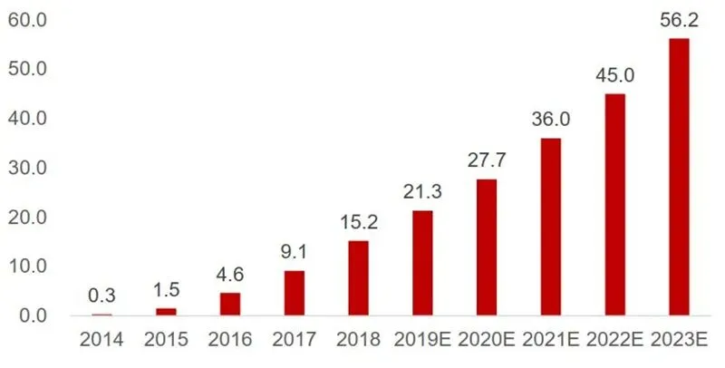 另外一个智能语音落地场景是智能家居,智能家居的最终形态是实现全屋产品的智能化,为AIoT的关键场景,在灯光、空调、电视、窗帘、门窗、背景音乐、安防、监控控制以及可编程定时控制等方面均有应用。2020年中国智能家居市场规模突破2400亿,2020年全球智能家居市场平均渗透率将超过60%。未来三年将是智能家居行业快速发展的时期,行业并购及市场规模增长将诞生一批年销售额超过百亿的企业。