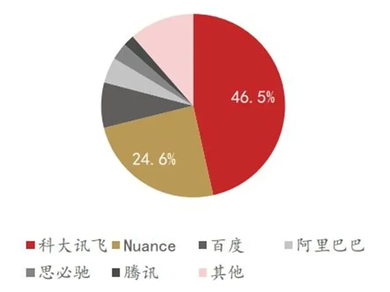 第二个2B场景是智慧医疗。智慧医疗领域,语音电子病历系统需求正在释放。通过语音输入的方式生成结构化病例、执行病例检索,节约医师输入病历的时间,解决方案一般包括 ASR/NLU 技术和专用医疗麦克风。此外,需求正在向导诊机器人、问诊小程序、诊后随访系统、住院病房管理系统、临床决策支持系统(CDSS)等多应用领域扩散。中国的智慧医疗建设行业有着广阔的发展空间和投资市场,当前市场空间整体超千亿元。根据中商情报网数据,2019年我国智慧医疗建设行业规模为880亿元,而2020年这一数字已经达到1040亿元。按照现状估计,预计到2022年,我国电子病历语音输入累计覆盖近1600家三级与二级医院付费数,渗透率分别为36%和4.5%,180万医生受益。四、智能语音格局及核心玩家