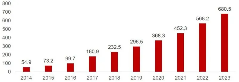 智能教育,AI 课堂的建设进入快车道。教育部发布的《教育信息化十年发展规划(2011-2020年)》中提到,我国要建立教育经费投入保障体系,并重点提出各级政府在教育经费中按不低于8%的比例列出教育信息化经费。2021年为十四五开局之年,判断教育信息化仍将迎来加码新政,智慧教育将正在政策助推下持续加速发展。政策直接相关的应用主要有智能语音训练与评测、互动教学等,其中语音评测市场受益于新高考方案和国家英语能力考试改革,潜力巨大。智慧教育空间宽广,应用边界不断拓宽。自2012年以来,语音识别、图像识别、深度学习等人工智能技术发展迅速,不断实现突破,人工智能在线教育在人工智能技术的发展推动下逐渐兴起,基于语音识别技术的语音测评、基于图像识别的智能情绪分析等人工智能在线教育产品涌现在市场中,人工智能在线教育行业发展步伐逐步加快。中国人工智能在线教育市场规模从2014年的54.9亿元增长至2020年368.3亿元,呈现快速增长趋势。随着人工智能技术日趋成熟,人工智能在线教育产品性能将进一步提升,用户规模将不断扩张,人工智能在线教育市场规模有望迎来新一轮快速增长。预测至2023年,中国人工智能在线教育规模将达680.5亿元,复合增长率仍将维持在20%以上。
