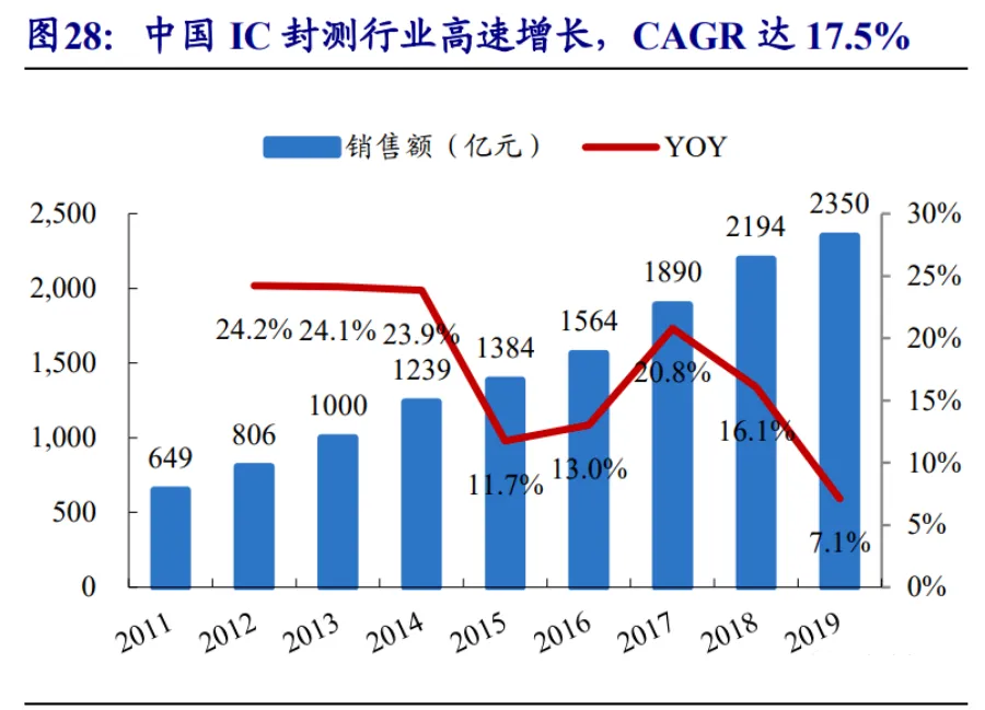 3.1、 国内封测行业市场广阔,长期增速稳定