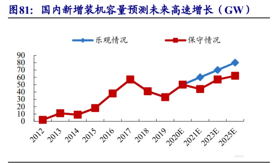 中国光伏累计装机容量已突破 200GW ,预计未来仍将保持高速增长。2019 年, 受到政策的影响,国内新增装机容量为 30.1GW。根据 CPIA 的预测,2020 年国内新 增装机容量在保守情况下可达到 49GW,在乐观情况下有望达到 50GW。