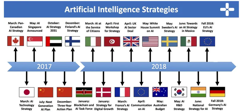 目前,包括美国、中国和欧盟在内的多国和地区颁布了国家层面的人工智能发展政策。时至2019年,中国政府继续通过多种形