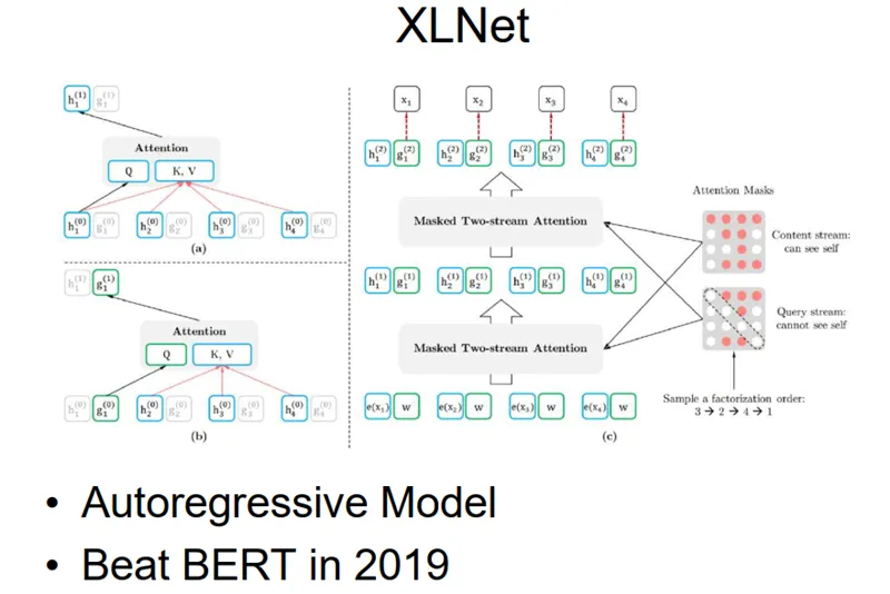 我们再深入分析 AI 近十年的发展,会看到一个重要的标志:人工智能在感知方面取得重要成果。人工智能在语音识别、文本识别、视频识别等方面已经超越了人类,我们可以说 AI 在感知方面已经逐渐接近人类的水平。从未来的趋势来看,人工智能将会有一个从感知到认知逐步发展的基本趋势,如下图所示:首先,我们来看看 AI 在感知方面做了哪些事情。在感知方面,AlphaGo、无人驾驶、文本和图片之间的跨媒体计算等取得了快速发展。从宏观来看,算法是这个感知时代最重要、最具代表性的内容。如果把最近十年的重要算法进行归类,以深度学习为例进行展示的话,我们可以得到下图所示的发展脉络。图中最上面浅紫色部分的内容是以前向网络为代表的深度学习算法。第二层淡绿色部分的内容表示一个以自学习、自编码为代表的学习时代。第三层橘色部分的内容代表自循环神经网络(概率图模型的发展)的算法。最下面粉色部分是以增强学习为代表的发展脉络。总体来讲,我们可以把深度学习算法归类为这四个脉络,而这四个方面都取得了快速的进展。如果再深入追溯最近几年最重要的发展,会发现 BERT 是一个典型代表(想深入了解的读者可以阅读https://arxiv.org/pdf/1810.04805.pdf)。以 BERT 为代表的预训练算法得到了快速的发展,基本上所有的算法都采用了预训练+微调+ Fine tune 的方法,如下图所示:BERT 在 2018 年年底通过预训练打败了 NLP 上 11 个任务的经典算法;XLNet 在 2019 年提出来通过双向网络的方法超过了 BERT (想深入了解的读者可以阅读https://arxiv.org/pdf/1906.08237.pdf),如下图所示:再后来,ALBERT 又超过了 XLNet 和原始的 BERT(想深入了解的读者可以阅读https://arxiv.org/pdf/1909.11942.pdf)。整个 BERT 的发展引发了后续一系列的工作。在其他方面,也涌现了很多有代表性的工作。如在 2018 年年底,英伟达通过预训练模型实现高清视频的自动生成。想要了解更多详细信息的读者可以阅读https://arxiv.org/abs/1808.06601。DeepMind 又把代表性的关联关系生成到 graph_net 中,于是在网络中可以实现一定的推理,其结构如下图所示。想要了解更多信息的读者可以阅读https://arxiv.org/abs/1806.01261。Facebook 的何恺明等人提出了以 contrastive learning 为基础的 MoCo 及 MoCo2,在很多无监督学习(Unsupervised learning)的结果上超过了监督学习(Supervised learning),这是一个非常重要的进展,这也标志着预训练达到了一个新的高度。想要了解更多信息的读者可以阅读https://arxiv.org/abs/1911.05722。杰弗里·辛顿等人利用 SimCLR,通过简化版的 contrastive learning 超过了 MoCo,后来 MoCo2 又宣称超过了 SimCLR,想要了解更多信息的读者可以阅读https://arxiv.org/abs/2002.05709。总体来看,在算法的时代,预训练算法取得了快速的进展。那么未来十年,AI 将何去何从?
